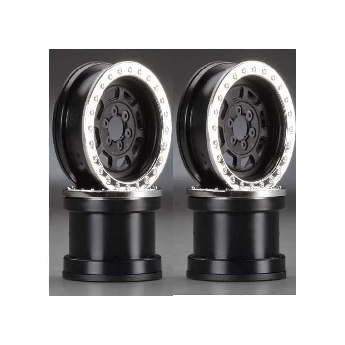 Officially licensed Trail Ready HD Series beadlock wheels dressed in black and chrome are easy to assemble and they work with most 2.2 tires. The hub design allows this wheel to mount to any Wraith, AX10 Ridgecrest or SCX10. Our IFDâ„¢ (Interchangeable Face Design) wheel system makes it easy to dress it up with a new look.