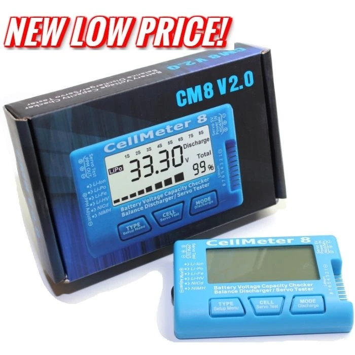 This RC CellMeter-8 digital battery capacity checker is able to be used for LiPo LiFe Li-ion NiMH Nicd batteries.