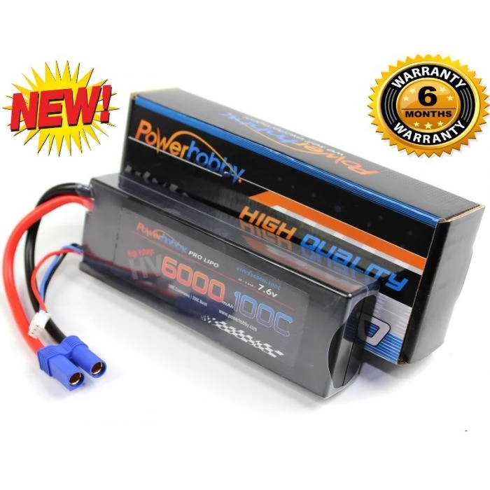 New 2-cell 7.6V HV 6000mAh 100C lipo is perfect for 1/10 & 1/8 scale cars, trucks, and buggies and Boats. Features a huge capacity for extended run times and a gigantic C rating so you’ll have all the power you’ll ever need.