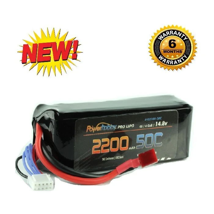 All racers know, the most important factor for your batteries is stable voltage under load. These Powerhobby 4S 2200mAh 14.8V 50C / 100C Lipo Battery packs are meant to power your RC Car, Truck, Boat, Helicopter or quad for peak performance. Each pack is equipped with Deans/ T connectors and JST-XH style balance connectors.
