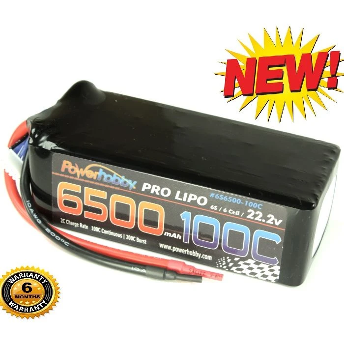 New 6-cell 6500mAh 100C lipo is perfect for 1/10 , 1/8 scale cars, trucks, and buggies and Boats, Planes, Helis & Quads. Features a huge capacity for extended run times and a gigantic C rating so you’ll have all the power you’ll ever need.