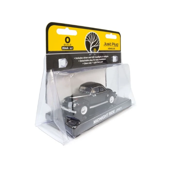 Revved up and ready to go, this timeless coupe is ready for a night time cruise under the stars. Just Plug Vehicles make it easy to model backcountry roads or busy city scenes. With a driver and a set of headlights and taillights, your layout’s traffic has never looked so realistic. Add a Vehicle to a Just Plug Light Hub for easy installation, Just Plug and you’re done!