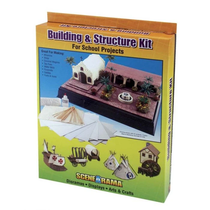 This is the Scene-A-Rama Building & Structure Kit by Woodland Scenics®FEATURES: Create buildings, structures, geometric shapes, tepees, covered wagons, castles, missions, waterwheels, bridges and so much more with the material in this kit! Special textures can be made such as: brick, cinder blocks, corrugated metal, shingles, terra-cotta clay, logs, stone, and lap siding. ASTM certified. Full-color instructions.